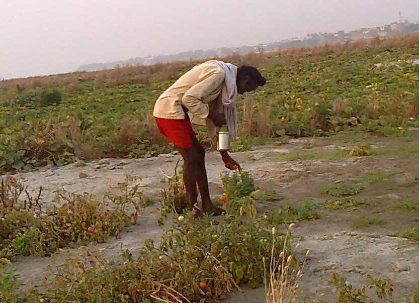 गेंदे के फूल तोड़ते हीरालाल