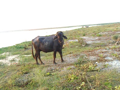 6. एक भैंस एक नाव के पास चर रही थी। गायें और भैंसे लगता है छुट्टा छोड़ दी हैं चिल्ला वालों ने। अब सब्जी नहीं निकलनी हैं तो बची बेलें ही चर लें ये। ऊंट तो पहले से चर रहा था॥ … पर मिस्टेक हो गयी। बोले तो गलती! जब फोटो लेने लगा तो भैंस मुंह ऊपर कर अपने नथुने सिकोड़ कर सांस छोड़ने लगीं। ध्यान से देखा तो पाया कि वह भैंस नहीं, भैंसा है। दवे पांव वापस होना पड़ा! ह्वाट अ ब्लॉगर अनफ्रेण्डली क्रीचर!