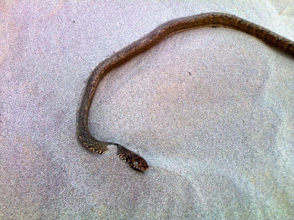 यह सांप खुले आसमान के नीचे रेत में मरा पड़ा था। कोई चोट का निशान नहीं। किसी अन्य जीव के चिह्न चिन्ह नहीं (यद्यपि रेत पर हवा चिन्ह चिह्न मिटा देती है)। अकेला मरा सांप।