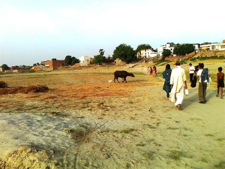 बहुत दिनों बाद कल्लू दिखा कछार में। गंगा दशहरा के पहले ही उसके खेतों का काम धाम खत्म हो गया था। अब वह सरसों के डण्ठल समेटता नजर आया। उसके साथ दो कुत्ते थे जो कछार में चरती भैसों को भौंक कर भगा रहे थे। लोग स्नान कर आ जा रहे थे। मुझे कल्लू का दीखना अच्छा लगा। दूर से ही हमने हाथ हिला कर परस्पर अभिवादन किया। फ़िर मैं रास्ता बदल कर उसके पास गया।
