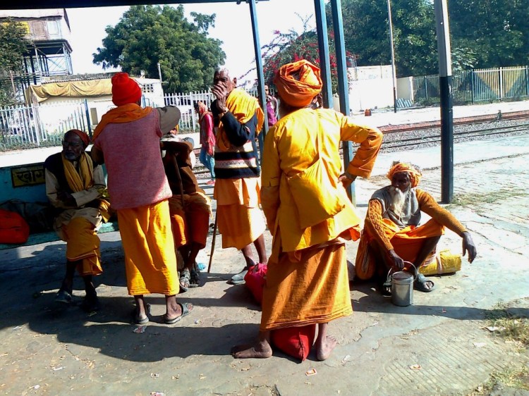 खागा स्टेशन पर घुमन्तू साधू लोग।
