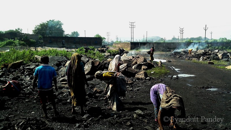 रास्ता कोयलामय था। कहीं लोग कोयला इकठ्ठा कर जला रहे थे – हार्ड कोक बनाने के लिये। यह हार्डकोक (फोड़) ईन्धन के रूप में या साइकल पर ले जा कर मार्किट में बेच कर आमदनी के लिये करते हैं वे। कहीं अण्डरग्राउण्ड खदान से निकला पानी पाइप के माध्यम से बाहर फैंका जा रहा था और उसमें लोग नहा रहे थे। श्रमिकों और रेल कर्मियों की बस्तियां थीं। छोटे छोटे मकान, झोंपड़ी नुमा। आशा से ज्यादा साफसुथरे। कोयला बेच कर प्रतिदिन 400 रुपये की आमदनी और परिवार में सभी का उस काम में लगे रहना एक अच्छी खासी कमाई का संकेत देता है; पर जीवन स्तर उसके अनुरूप नजर नहीं आता था। जीवनस्तर की मध्यवर्गीय मानसिकता – जो उस स्तर की आमदनी के साथ जुड़ी रहती है, का नितांत अभाव दिखा मुझे। पैसा निश्चय ही अनेक कुटेव-कुरीतियों में जा रहा होग। वह कोण पता करने के लिये मैं उचित माहौल/मानसिकता में नहीं जा रहा था। आप उसके लिये साहब की तरह नहीं जाते…