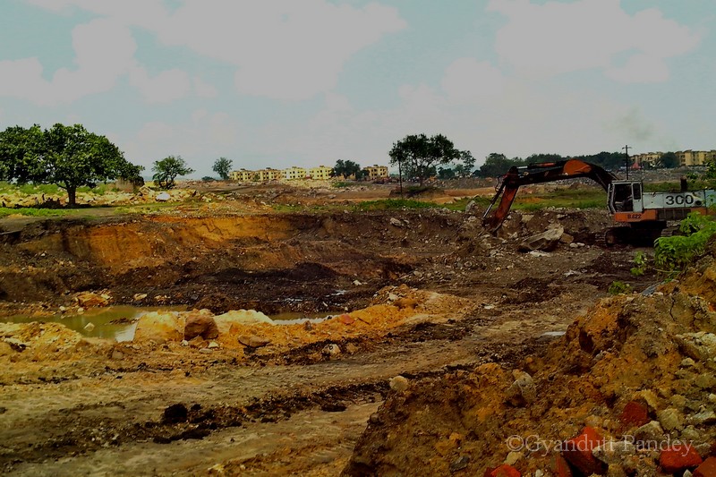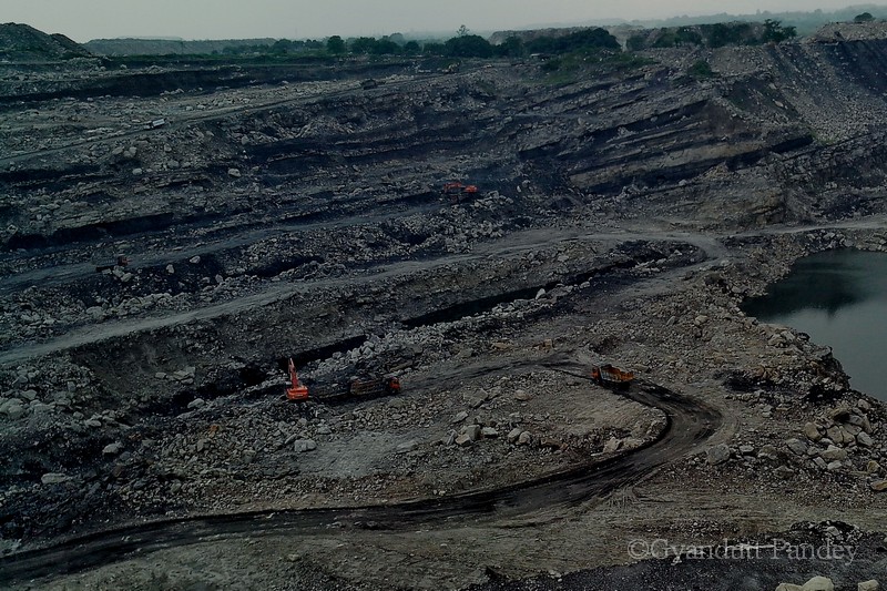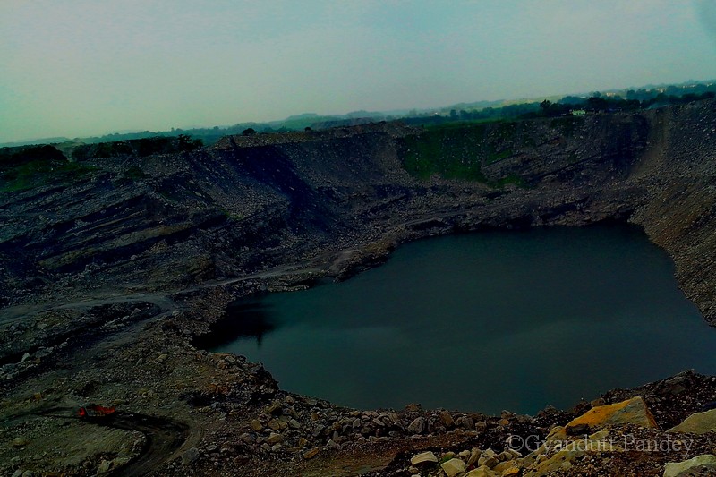 ओपनकास्ट खदान के एक ओर जहां पर्याप्त खनन हो चुका था, पानी की एक झील बन चुकी थी। खनन के बाद बनने वाले इस तरह के गढ्ढों को भरने के विषय में भी कोई नियम होगा … पर उस नियम के पालन में कोई गम्भीरता या कड़ाई हो, ऐसा प्रतीत नहीं हुआ।