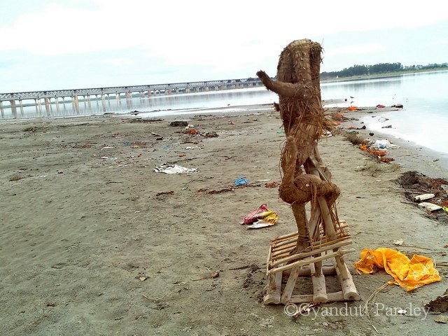 न करने पर हिन्दू जनता की धर्म के प्रति फूहड़ श्रद्धा गंगा किनारे बिखरे इन मूर्तियों के अवशेषों के रूप में दिखने लगी है। शिवकुटी, इलाहाबाद में गंगा किनारे इन मूर्तियों के अवशेषों के चित्र ले रहा था तो एक 12-13 साल का बच्चा मेरे पास आया।