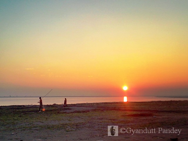 छ बज रहे थे सवेरे के। उसके पास मेरे सवालों का जवाब देने को ज्यादा वख्त नहीं था। मेरे सामने वह तट पर उथले पानी में जाल से छोटी मछलियां पकड़ने लगा।