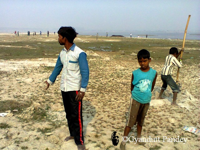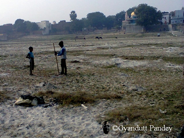 करीब तीन बीघा में गेंहू-चना बोया है और 4 बीघा में सब्जियां। घाट की पगडण्डी के दूसरी ओर भी हर साल बोता था वह सब्जियां, पर इस साल पार्षद मुरारी यादव ने कह दिया कि उस तरफ़ वह खेती करेगा। मैने छोड़ दिया। कौन लड़ाई करे। लेकिन देखिये, उसने कोई खेती नहीं की है। मैने देखा कि उस ओर कुछ भैंसे घूम रही थीं और लड़के क्रिकेट खेल रहे थे। मुरारी खेती नहीं कर रहा है। यह मात्र सप्पा-बसप्पा का स्थानीय टिर्र-पिर्र है। ये भैसें कभी सब्जी या गेहूं के खेत में हिल गयीं तो स्थानीय राजनैतिक झगड़े की भी सम्भावना बन जायेगी शायद। :-)