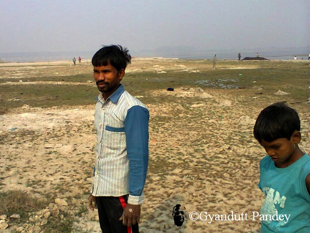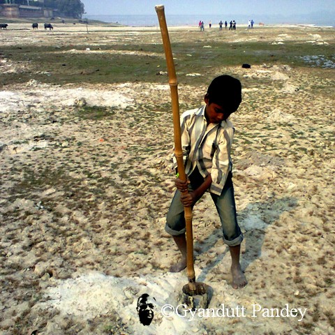 आज रविवार को कछार में गंगा किनारे घूम रहा था। एक छोटा लड़का पास आ कर बोला – अंकल जी, वो बुला रहे हैं। देखा तो कल्लू था। रेत में थाला खोद रहा था। दूर से ही बोला – खेती शुरू कर दी है। थोड़ी देर से ही है, पर पूरी मेहनत से है।