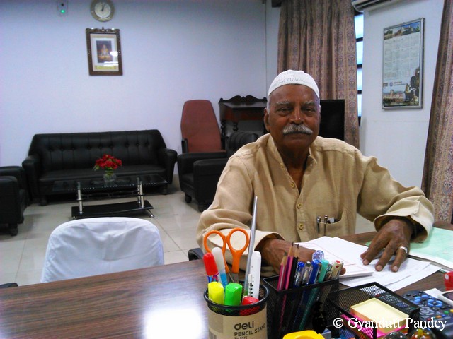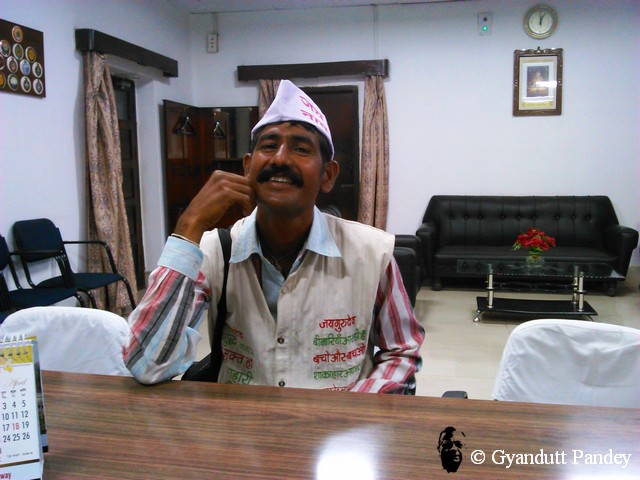 उनके साथ, एक जवान आदमी थे, धर्मवीर पांडेय। दोनो बरेली से आये थे। धर्मवीर ने भी अजीबोगरीब वेश बना रखा था। सिर पर आम आदमी पार्टी छाप टोपी। एक सफेद जैकेट, जिसपर शाकाहार और पर्यावरण के बारे में कुछ नारे लिखे थे। टोपी पर भी शाकाहार के प्रचार में कुछ लिखा था। जयगुरुदेव के शाकाहार मुहिम का प्रचार करने वाले व्यक्ति थे धर्मवीर। उनसे बातचीत में लगा कि वे समर्पित कार्यकर्ता हैं। पर इस स्तर का समर्पण कैसे है – वह स्पष्ट नहीं हो पाया। इस्लाम के विषय में भी इस प्रकार का समर्पण हिन्दू समझ नहीं पाते और नासमझी में उसे “बर्बर” धर्म की संज्ञा देने लगते हैं!