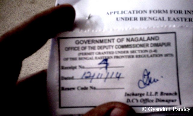 इसी दफ़्तर से मिलता है वह। आपको फार्म भर कर अपने स्थायी निवास का प्रमाणपत्र नत्थी करना होता है। उसके बाद एस.डी.ओ. सिविल के पास व्यक्तिगत रूप से पेश होना होता है। पेशी बाद आपको फाम आई.एल.पी.शाखा में जमा करा होता है। वहां वे आपका वेब कैमरा से चित्र लेते हैं और वे आपको फार्म जमा करने का कूपन देते हैं। कूपन के साथ परमिट लेने को 12 बजे बाद आना पड़ता है।