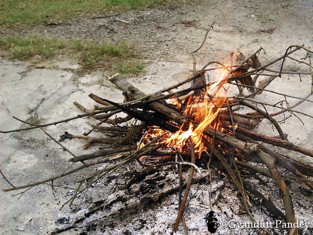 लेखक यात्रा करता सान् सल्वाड़ोर पंहुंच कर वहां एक (हिंसक) फुटबाल मैच का विवरण दे रहा था। कउड़ा धीमा हो गया था। राम बचन – मेरे आउट हाउस में रहने वाला जवान जो रेलवे मैकेनिकल वर्कशॉप में काम करता है और रविवार होने के कारण घर पर था – और लकड़ियां ला कर कउडा तेज करने लगा। आग और धुआं बढ़ गये। पुस्तक का भी एक अध्याय पूरा होने को आया। मैं वह अध्याय पूरा कर घर के अन्दर चला आया। संझा के समय जब लेखक आगे निकारागुआ की यात्रा में निकलेगा और यहां घर में अगर शीत न गिरने लगा तो एक बार फिर कउड़ा के पास बैठने की सोचूंगा। अन्यथा कल तो सोमवार है। फिर सप्ताह भर छुट्टी न मिलेगी कउड़ा के पास बैठने को।DSC_0059