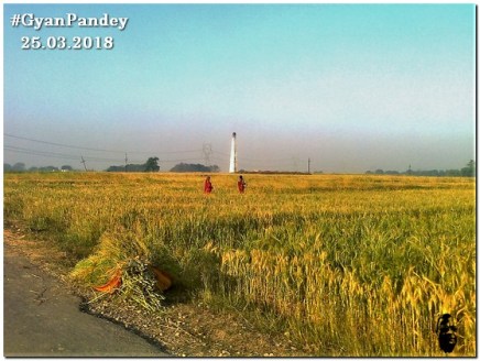 दो महिलायें गेंहू-सरसों के खेत में से सरसों की कटाई कर रही थीं। एक गट्ठर डेढ़ी सड़क के किनारे रख दिया था। इससे पहले मैं उनसे कुछ वार्तालाप कर पाता, वे खेत के दूर के छोर पर चली गयीं। सड़क पर खड़े हुये उतनी दूर उनसे बात करने में आवाज ऊंची करनी पड़ती। गांव के मानकों में वह सामान्य बात होती पर शहरी शिष्टाचार में वह अशिष्टता से कम नहीं होता। मैं आगे बढ़ गया।