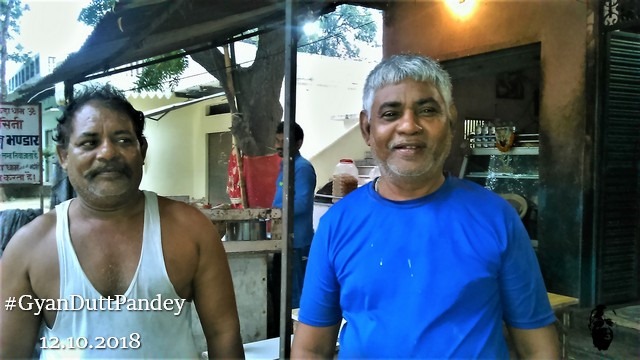 बिल्कुल देसी दिखने वाले भाई हैं। देसी परिवेश। पर उनके बिजनेस सेंस पर तो किसी मैनेजमेण्ट संस्थान में भाषण दिया जा सकता है। मैं तो प्रभावित हो गया उनसे। जहां इस पूर्वांचल में हर व्यक्ति सरकारी नौकरी तलाश रहा है, वहां इस विश्वकर्मा परिवार का मिठाई-नमकीन व्यवसाय बहुत आकर्षक लगा।