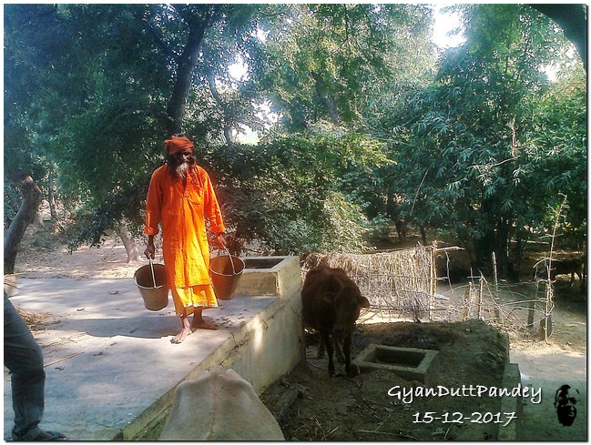 बाबा के पास आसपास के लोग आते हैं। सेवा में सहयोग देते हैं। मुझे लगा कि उनके लिये आकर्षण भी है यहां आने का। बाबा उन्हें चाय पिलाते हैं। एक दो गायें दूध देने वाली हैं। उनसे उतना ही दूध दुहते हैं, जितना चाय के लिये चाहिये, बाकी बछड़े/बछिया को पीने देते हैं।