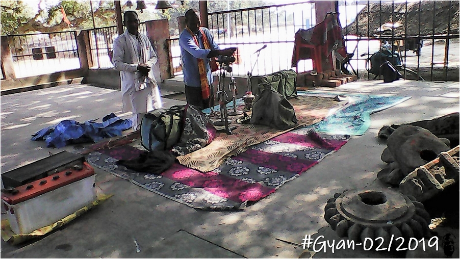 मन्दिर परिसर में कोई भजन गायन का आयोजन होने जा रहा था। स्त्रियां और पुरुष एक ओर इन्त्तजार कर रहे थे। चबूतरे पर माइक सिस्टम सजाया जा रहा था। गायक आसपास थे। साउण्ड सिस्टम पर भोजपुरी भजन बज रहा था। उसकी क्वालिटी उत्तम थी – किसी फिल्मी गाने की भौंडी पैरोडी नहीं था वह।