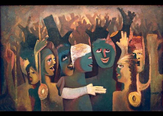 इस पोस्ट का फ़ीचर चित्र भी उन्ही का है। उस एब्स्ट्रेक्ट चित्र पर उनकी टिप्पणी है – We are destroying the world and cutting the trees but we do not know with each toppled tree we are reducing our chance of survival.