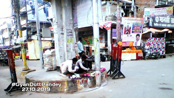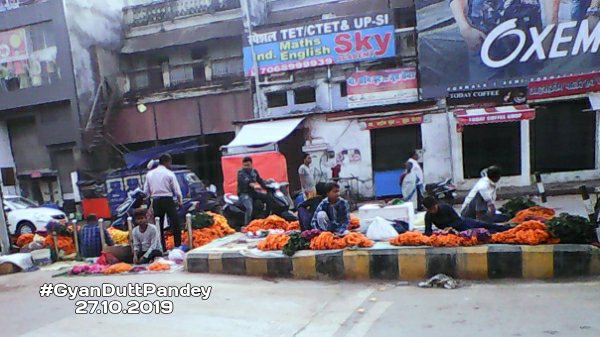 दुकानें खुली नहीं थीं. दिवाली का दिन था तो खुलेंगी जरूर. फुटपाथ ब्लॉक कर फूल बेचने वाले जरूर जमाए दिखे अपने पेवमेंट स्टाल. फूल वाले मोटर साइकिल पर फूल ले जाते भी दिखे. उसी तरह लादे हुए जैसे भदोही जिले में कार्पेट की काती लादे मोटर साइकिल वाले दिखते हैं.