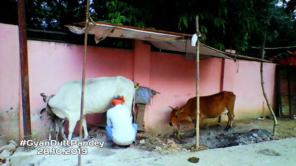 एक जगह फुटपाथ कब्जा कर गाय पाले थे एक सज्जन और सवेरे दूध दुह रहे थे. गाय दुहने का दृश्य बिना चित्र लिए नहीं निकला जा सकता था.