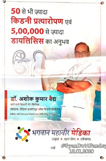 दो दिन बाद विवेक को रांची जाना था और वे मुझे अपने साथ ले कर गये। रांची में भगवान महावीर मेडिका सुपर स्पेश्यालिटी अस्पताल के प्रतिष्ठित किडनी रोग विशेषज्ञ डाक्टर अशोक कुमार बैद्य से एक अप्वाइण्टमेण्ट का इंतजाम भी विवेक ने कराया।