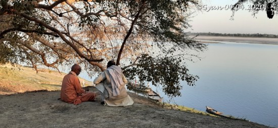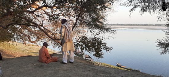 गेरुआ वस्त्र पहने व्यक्ति मुझे लगा कि कोई साधू होगा जो शाम के समय सध्यावंदन के लिये गंगा तट पर चला आया होगा। और दूसरा उसका चेला… पर यह समझने में देर नहीं लगी कि ये यहीं पास के गांव के गृहस्थ हैं। शायद मित्र।