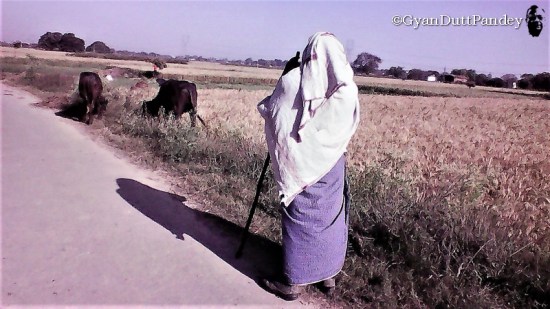 कोलाहलपुर और डईनियाँ के बीच पाही पर रहने वाली बुढ़िया महिला दूर से ही मुझसे बोली – आज कहां से होई क आवत हयअ (आज कहां जा कर आ रहे हो)?