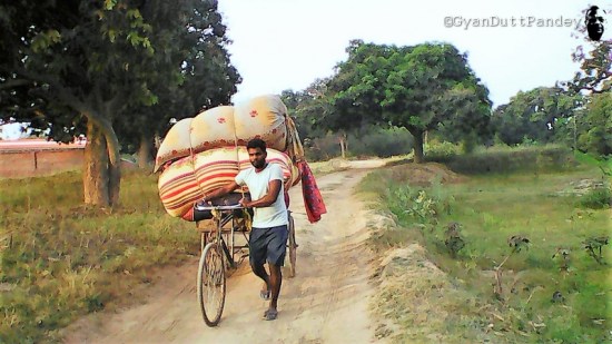 गांव में वह दरवाजा कहां है? यहां प्रधानमंत्री आवास योजना में बने एक या दो कमरे हैं। उनसे अलग बना शौचालय। वहीं बाहर कहीं हैण्डपम्प। कमरे के बाहर गाय-बकरी – यहां तक कि घोड़ा भी बंधे हैं। उसके साथ जाती है गांव की सड़क। जिसपर अगर डामर बिछा है,या खडंजा है तो औरतें उसी पर कपड़े भी कचारती हैं। उसी किनारे उपले पाथती हैं। उपडऊर भी वहीं बना होता है मानो उपलों का शिवलिंग हो। यही नहीं, घर के आसपास खेत, जिसमें वह परिवार स्वामित्व के आधार पर या अधियरे के रूप में, खेती करता है, वह भी घर का ही एक्स्टेंशन होता है। और वह एक्स्टेंशन दूसरों के घर/एक्स्टेंशन से गुत्थमगुत्था हुआ होता है।