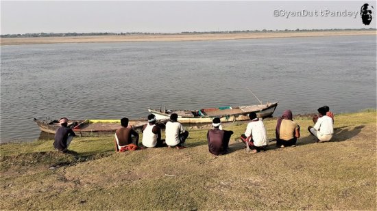 दो बड़ी बालू ढोने वाली नावें किनारे खड़ी की गई थीं। नौ बालू कर्मी सवेरे आ गए थे और काम शुरू करने के पहले बैठे गपशप कर रहे थे। थोड़ी ही देर में वे एक एक कर उठे और नावों में अपना स्थान ग्रहण करने लगे। काम के लिये नावें उस पार ले जाने वाले थे वे।