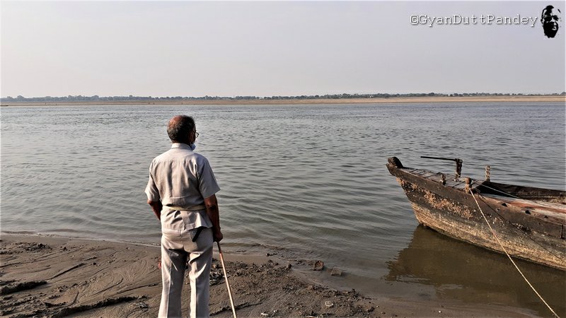 नदी यानी गंगा नदी। मेरे घर से कौआ की उड़ान के हिसाब से 2 किलोमीटर दूर। बड़ा फ्रीक्वेण्ट आना जाना है द्वारिकापुर के गंगा तट पर। स्नान नहीं करता गंगा में, पर दिखता तो है ही कि जल कैसा है।