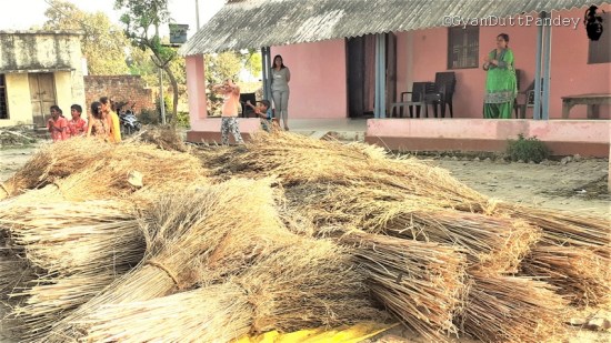 अब रबी की फ़सल में जो भी अनाज तैयार है उसे जल्द से जल्द स्टोर करने में सब व्यस्त रहे हैं। गेंहू तो लोगों ने बचा लिया है, पर भूसा, जो गाय-गोरू के लिये अत्यन्त आवश्यक है, आंधी-पानी से बरबाद हो रहा है।