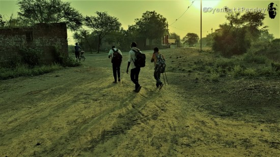 ज्यादा देर रुके नहीं वे, कि मैं उनसे और बातचीत कर पाता। नाव से गंगा पार करने का इरादा त्याग कर वे सड़क पर आगे बढ़ गये। उन्हें अंततोगत्वा पूर्व दिशा में जाना था लातेहार के लिये, पर सड़क पर वे पश्चिम की ओर चले। आगे पुल पार करेंगे मिर्जापुर के लिये। मैं उन्हें गूगल मैप खोल कर रास्ता समझाना चाहता था, पर वे मेरे मोबाइल पर सर्च के लिये इंतजार नहीं किये।