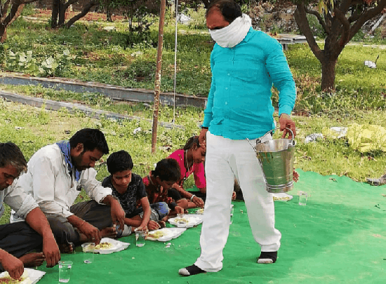 भोजन सादा है। पर नौजवानों में उन श्रमिकों के प्रति आदर भाव है। भोजन कराने में जो आंतरिक सुख का की अनुभूति होती है, वह उनके हावभाव में दिखती है। वे और तहरी लेने का आग्रह भी करते है।
