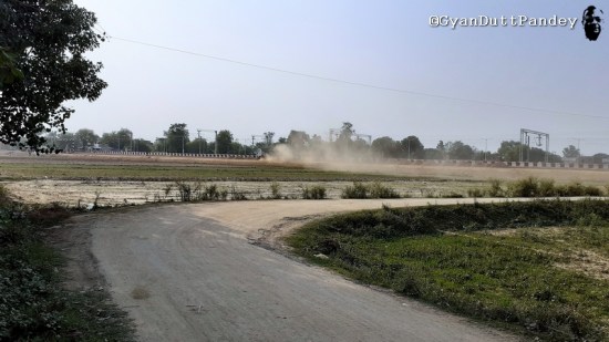 मेरे घर से नेशनल हाईवे तक करीब 800 मीटर की सड़क है और उसमें एक रेलवे फाटक भी है। इस सड़क पर करीब 8-10 ट्रेक्टर ट्रॉलियां आती जाती दिखती हैं। हाईवे की ओर वे गंगा बालू और खेतों से निकाली मिट्टी ले कर जाती हैं और वापसी में खाली ट्रॉली को दौड़ा कर लोड करने की होड़ रहती है। ट्रॉलियां ज्यादा दिखने से कच्ची सड़क पर धूल भी ज्यादा उड़ती है। पहले कई सप्ताह तक एक भी ट्रेक्टर ट्रॉली नहीं नजर आयी। अब उनकी लाइन लगी है। धूल और रेत से प्रदूषण होने लगा है।