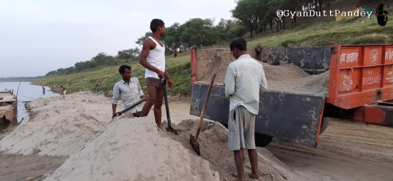 वहीं पर राजेश मिला। राजेश सरोज। वह बम्बई गया था। वहां से मुझे फोन पर बताया था कि किसी मछलीमार नौका में स्थान बनाने का यत्न कर रहा है। अब यहां गंगाकिनारे बताया कि बम्बई से वापस आ गया है। लॉकडाउन के पहले ही आ गया था। तब ट्रेने चल रही थीं। बाकायदा टिकट ले कर ट्रेन से आया था। अब बालू हेण्डलिंग में काम कर रहा है। वह अन्य मजदूरों के साथ ट्रेक्टर ट्रॉली में बालू लाद रहा था।