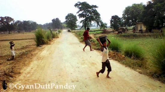 सवेरे साइकिल भ्रमण से लौटानी में बड़ी गतिविधि नजर आती है सड़क के किनारे। आदमी-औरत-बच्चे इकठ्ठा हो चुके होते हैं। जिनके काम के एरिया बंट चुके हैं, वे फावड़े से मिट्टी खोदने और तसले भरने, मिट्टी सड़क की सेस पर फैंकने में लग चुके होते हैं। कहीं सड़क की नपाई चल रही होती है। कहीं प्रधान या उसके आदमी आकलन कर रहे होते हैं कि कितने तसले मिट्टी डालनी पड़ेगी। कहीं परिवार के बच्चे भी काम पर लगे दिखाई देते हैं। उनमें परिवार के बाकी लोगों की बजाय ज्यादा जोश रहता है। उनको पिकनिक सी लगती होगी यह पूरी गतिविधि।