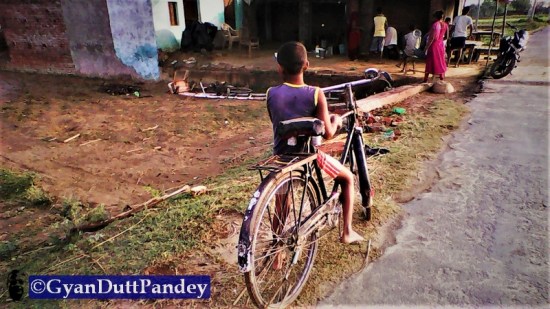 उस दिन गांव में एक बच्चे को कैंची चला कर साइकिल साधते देखा तो बचपन की सारी स्मृतियां कौंध गयीं। यह गांव है, जहां भारत कुछ कुछ वही है, जो मेरे बचपन में हुआ करता था। यद्यपि यह भी मेरे बचपन के युग से कहीं ज्यादा सम्पन्न है। पर अभाव के चिन्ह हैं जरूर और गांव ने अभी भी इतने कार्बन फुटप्रिण्ट्स नहीं छापे हैं कि असहजता और अपराध बोध हो। बस; पत्तल की बजाय प्लास्टिक और थर्मोकोल का अपराध जरूर कर रहा है गांव।
