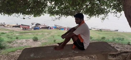 बातचीत की प्रक्रिया में उस नौजवान ने दो तीन बार थूका। जो सूचना मुझे मिली, उसके अनुसार ये सज्जन बालू खनन की गतिविधि ऑर्गेनाइज करते हैं। सुबह शाम यहीं बेंच पर आ कर बैठते हैं। नावें फेरा लगाती हैं, उसकी गणना के लिए एक कर्मचारी नाव वालों को टोकन बांटता है। शाम के समय टोकन के आधार पर नाव वालों और श्रमिकों को पेमेंट होता है। रोज का रोज। सहज समझ में आने वाला प्रबंधन है।