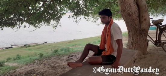 मैंने उसके एक दो चित्र लिए, इससे पहले कि वह मुझे देख अपनी मुद्रा बदले। उसके बाद उन सज्जन से बात की – कैसा लगता है गंगा का यह दृश्य? क्या सोचते हैं?