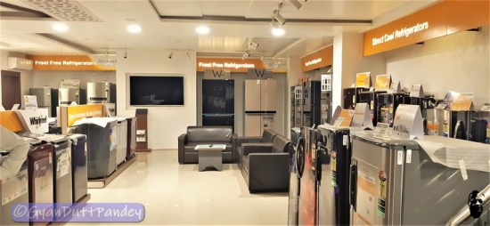 शोरूम बड़ा है गिरीश जी का। ह्वर्लपूल के सभी तरह के ह्वाइट-गुड्स वहां उपलब्ध हैं। अन्य प्रतिष्ठित ब्राण्डों के भी बिजली से चलने वाले उपकरण भी वहां थे। पिछले साल भर हमने तो उपकरण कस्बे की मार्केट या अमेजन पर खरीदे होंगे, उनका बेहतर और वाजिब विकल्प वहां मौजूद था। लेने का मन तो कई चीजों पर ललचाया, पर अपने आप को हमने प्रयास कर रोका। अन्यथा कैशलेस मार्केट का यही घाटा है। आप खाली जेब लिये बाजार जायें तो अपने मोबाइल के बैंकिंग के एप्स के बल से पहाड़ जैसी खरीददारी कर लौट सकते हैं – अगर आपमें अतिरेक में खरीददारी (impulsive buying) करने की (बुरी) आदत हो। किसी तरह हम वहां बिना खरीददारी के निकल पाये – बाजार से गुजरा हूं, खरीददार नहीं हूं वाला भाव ओढ़ कर।