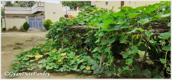 गुन्नीलाल जी के घर पर लगी सब्जियों की बेलें।