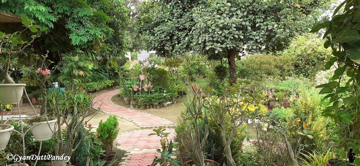 मेरी पत्नीजी की घर में उद्यान को सही रूप देने में रुचि है। हमने पिछले कई वर्षों में अपनी पेंशन का ठीक ठाक हिस्सा वनस्पतियों पर खर्च कर दिया है। अब; जब अपनी बढ़ती उम्र और अल्पज्ञता के कारण उद्यान सही शेप नहीं ले पाया (वह उद्यान कम, अरण्य ज्यादा लगता था); तो हमने एक माली की तलाश की। सौभाग्य से घर के पास के ही रामसेवक जी मिल गये। वे सप्ताह में एक दिन हमारे परिसर को संवारने में वेतन के आधार पर योगदान करते हैं। उनके काम करते महीना से ज्यादा हो गया है, और उनके मेहनत से घर अरण्य से उद्यानोन्मुख हो गया है।