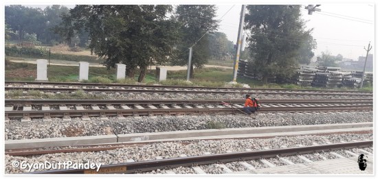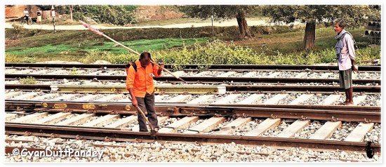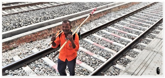 वह रेल की पटरियां देखता आगे बढ़ने लगा। एक जगह तीन चार चाभियां कसीं। एक पैण्डरोल क्लिप छिटक कर गिरी हुई थी, उसे लगा कर हथौड़े से ठोंका। वहीं से मुझे बोला – यहां जर्क लगता है। पण्डराल बहुत ढीले होते हैं यहां।
