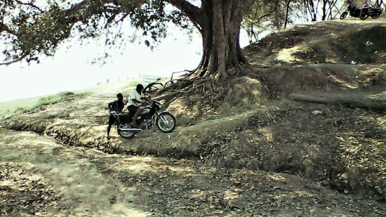 लेकिन उस उभरते वीर नौजवान की वीरता की जल्दी ही हवा निकल गयी। गंगा घाट से करार पर मोटर साइकिल चढ़ाते समय उस नौसिखिया ने समय पर एक्सीलरेटर नहीं लगाया और मोटर साइकिल पीछे की ओर फिसलने लगी। उसके बहुत यत्न करने के बावजूद खड्ड में सरक गयी। उसका सारा विशिष्ट अंग से मछलियाँ निकाल लेने का ज्ञान ऊपर पंहुचे साथियों की गुहार में बदल गया। गुहार सुन एक अन्य वीर आया और दोनो ने मिल कर मोटर साइकिल निकाली।