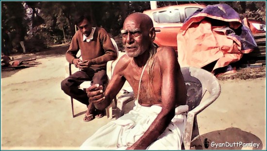 अशोक जी का बड़ा कुटुम्ब है। वे छ भाइयों में सबसे बड़े हैं। पर शायद सबसे प्रतिभावान भी हैं। वे किसान भी हैं और संस्कृत के अध्यापक भी। जजमानी/पण्डिताई भी होगी। उनके बोलने का ढंग बहुत प्रभावी है। गांवदेहात में वैसी वक्तृता शक्ति कम ही मिलती है। उनके पिता बाला प्रसाद शुक्ल भी 84 वर्ष की उम्र में बहुत एक्टिव हैं। उनकी घनी शिखा जो उनके वक्ष तक आ रही थी, मुझे बहुत अकर्षक लगी। उनको मैंने चरण स्पर्श किया तो बहुत आत्मीयता से उन्होने आशीष दिया। लालचंद जी (जो मुझे उनके घर ले गये थे) ने बताया कि वे आस पास की जमीन में खुरपी ले कर लगे रहते हैं। शायद वही उनके स्वास्थ्य का राज है।