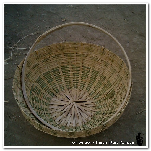 मैने पूछा उसके औजारों के बारे में। गंड़ासा नुमा औजार को उसने बताया – बांका। उसका प्रयोग वह बांस काटने में करता है। उससे छोटी बांकी। बांकी से महीन काम करता है वह – बांस को छीलना, दऊरी की सींके बनाना आदि। दऊरी बुनने के बाद उसके ऊपर बांस का रिंग नुमा गोला लगाता है। उसी से दऊरी में मजबूती आती है। उसने बिनी दऊरी और गोला दिखाया मुझे।