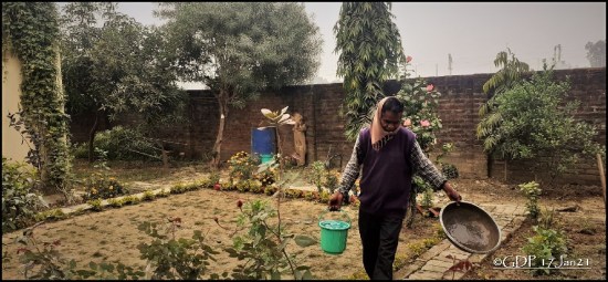 “नहीं। उनके पास समय ही नहीं है। बाग बगीचे की जानकारी है। यह जानते और बता देते हैं कि क्या कहां लगना चाहिये। पर साथ साथ लगने के लिये समय नहीं है। उन्होने सीसीटीवी कैमरे लगा रखे हैं। दफ्तर से आने के बाद अपने कम्यूटर पर देख लेते होंगे कि कहां क्या काम हुआ है। वर्ना ज्यादा बातचीत नहीं होती। अपने हिसाब से काम करता रहता हूं। समय पूरा देता हूं। जंगर चोरई (जांगर – पौरुष/श्रमशीलता। जंगर चोरई – काम से जी चुराने की आदत) नहीं करता।” रामसेवक बताते हैं। “मेरा शरीर पतला है, इसलिये मेहनत करने में दिक्कत नहीं होती।”