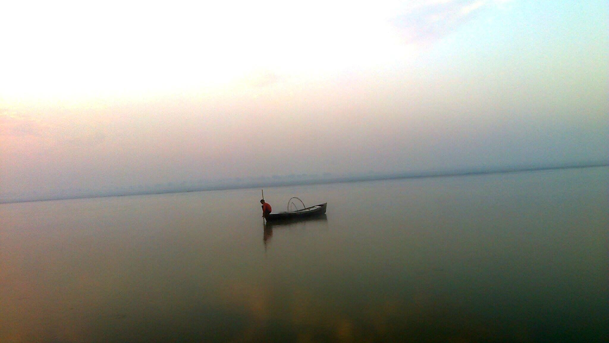 दूर गंगा में विष्णु अपनी नाव पर था। इनमें से एक ने जोर से पूछा – मछली है?