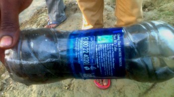 एक बोतल में चारे के रूप में पानी भर कर उसमें जिन्दा मछलियां ले कर आये थे। छोटी मछलियां जो उन्होने अपने गांव के तालाब से पकड़ी थीं। उन मछलियों का नाम बताया – सऊरी। सऊरी को कांटे में फंसाया। कांटा एक लम्बी नायलोन के तार से बंधा था। तार उन्होने बांस की दो खप्पच्चियों से बांध दिया था और खपच्चियां गंगा किनारे गाड़ दी थीं। किनारे पंहुच बड़ी फुर्ती से किया था यह काम उन्होने।