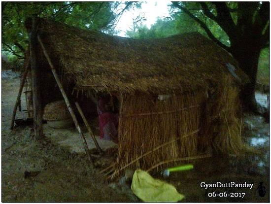 खैर, उस महिला ने बिना झिझक मुझे आने दिया। मड़ई छोटी थी। दो खाट की जगह। पांच लोग उसमें थे। छठा मैं। किसान (नाम पता चला – मठल्लू यादव) ने अपने लड़के को भेजा, राजन भाई को ढूंढ कर लिवा लाने को। करीब दस-पन्द्रह मिनट हम वहां रुके, जब तक बारिश तेज रही।