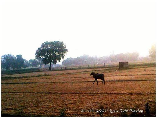 आज पचेवरा गया था। वहां के खोह और सरपत वनों में नीलगाय का आधा दर्जन का एक झुण्ड दिखा और एक मोर भी। एक लोमड़ी भी रास्ता काट निकल गई थी। वह सब देख कर यह लिखने का मन हो आया।