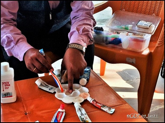 वे मोदीकेयर के एमएलएम किट के साथ आये थे। उन्होने मेरी पत्नीजी और मुझे मोदीकेयर कई उत्पादों के बारे में अन्य ब्राण्डों के उत्पादों की तुलना में प्रयोगों द्वारा समझाने का (लगभग) सफल प्रयास किया कि मोदीकेयर के उत्पाद उत्तमोत्तम हैं।