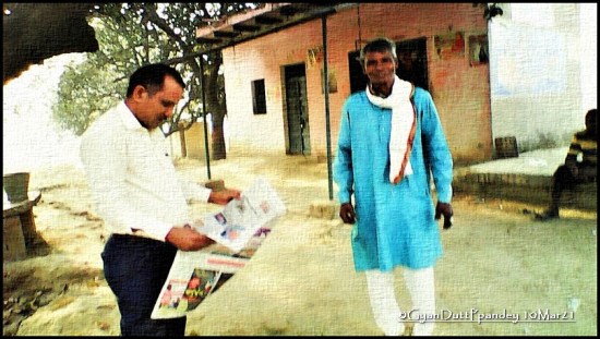 भगवानदास साफ नीले रंग के कुरते और झक्क सफेद पायजामे में खड़े थे, उमेश पण्डित की दुकान के पास। गले में साफ गमछा। एकबारगी लगा कि वह भी तो परधानी में उम्मीदवार नहीं हो गये?! पर वैसा नहीं था। परधानी ओबीसी के लिये आरक्षित हो गयी है; उनकी जात बिरादरी उसमें नहीं आती। वह बोल रहे थे – “एतना जने खड़ा होत हयें। सब बोटई मांगत हयें। केऊ बाटी चोखा खियावई क नाम नाहींं लेत बा। (इतने लोग खड़े हो रहे हैं प्रधानी के लिये; सभी वोट ही मांग रहे हैं। कोई बाटी-चोखा खिलाने के लिये हामी नहीं भर रहा।)”
